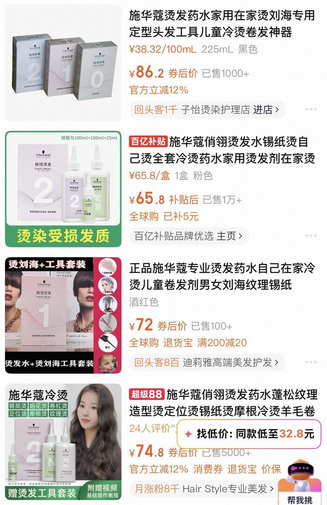 当日记者进行走访,来到了几家化妆品店,发现展柜上大部分都是施华蔻泡泡染膏和染发膏,并未看到有施华蔻俏翎烫发药水这款产品。店员告诉记者,这款产品在本店并未售卖。随后记者在网购平台搜索发现,少部分商家在售卖。